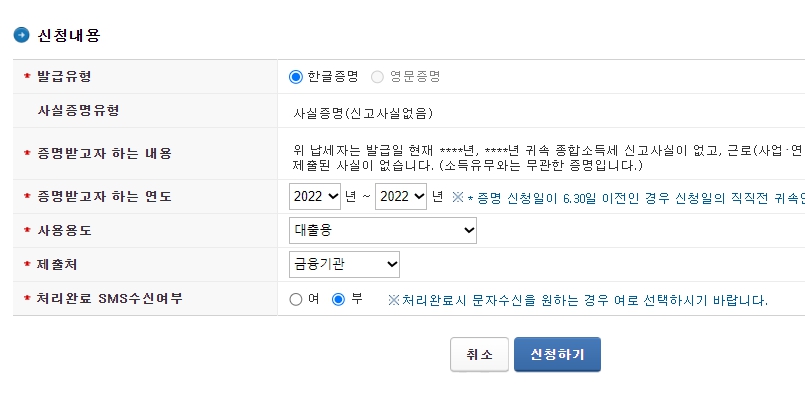 그런데..... 신고내역이 없다고, 발급이 안된다고 합니다. 네 그렇습니다. 소득사항이 없다면 발급이 안됩니다. 이럴 땐 어떻게 해야 할까요? 저는 0원이라고 찍혀서라도 나올 줄 알았습니다만... 이럴 때는 신고사실이 없다는 사실증명서를 발급받아야 합니다.